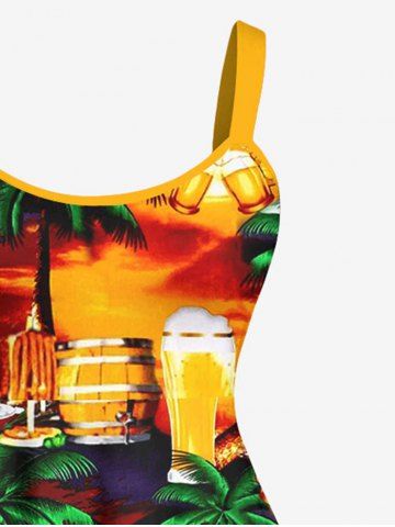 Robe Hawaïen Arbre Noix de Coco et Tasse de Bière Imprimés de Grande Taille - Orange - Orange