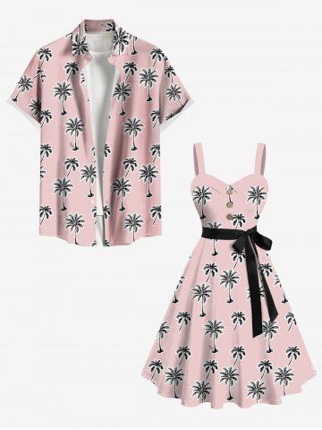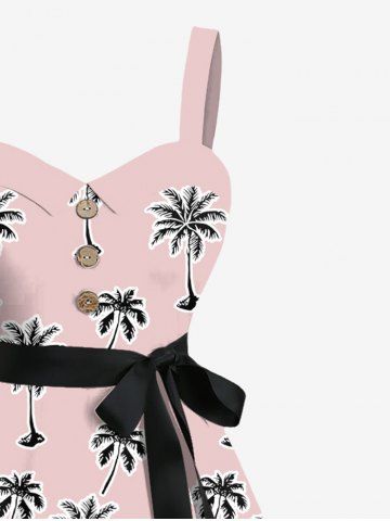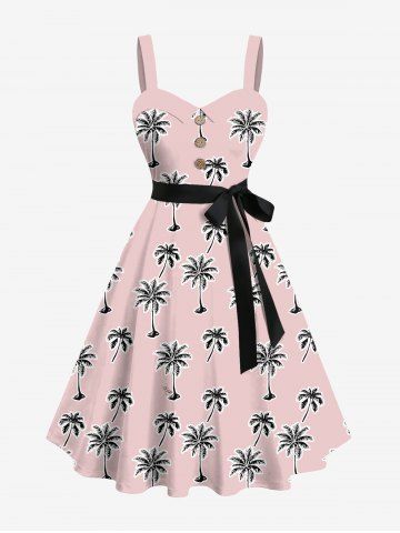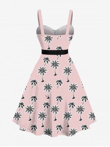 Robe Hawaïen Cocotier Imprimé de Grande Taille à Col Relevé avec Ceinture - Rose Clair - Rose Léger