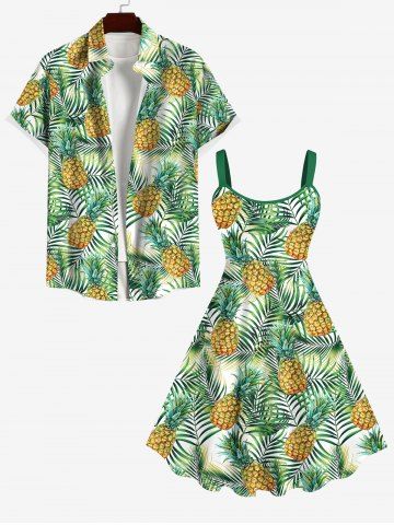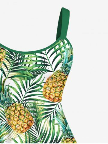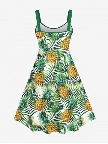 Robe Hawaïen Feuille Arbre Noix de Coco et Ananas Imprimés de Grande Taille - Vert - Vert