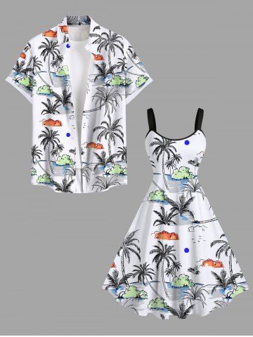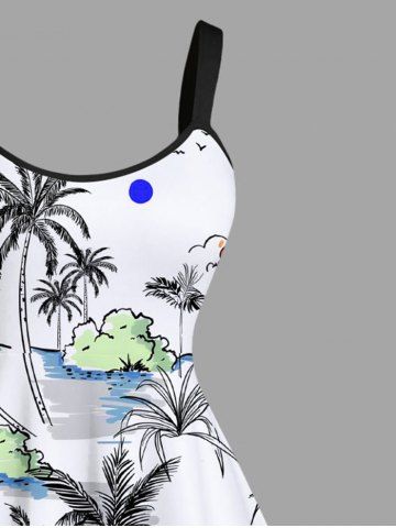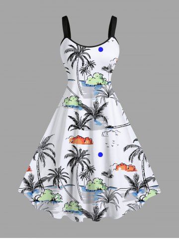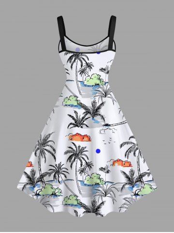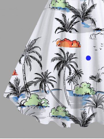 Robe Hawaïen Ligne A Nuage Arbre Noix de Coco et Océan Imprimés de Grande Taille - Blanc - Blanc