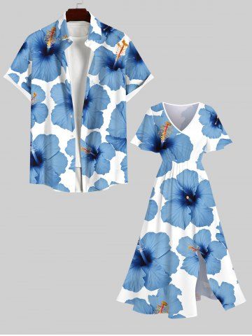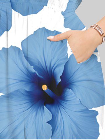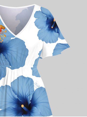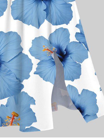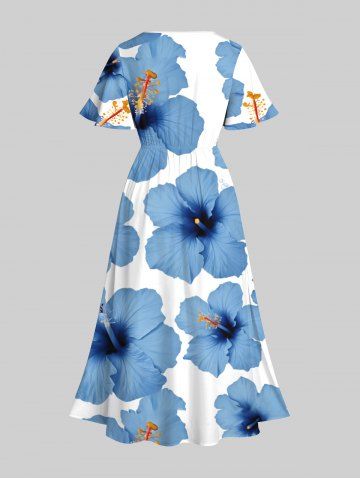 Robes Graphiques > Robe Hawaïen Mi-Longue Fendue Fleur D'Hibiscus et Feuille Tropicale Imprimées de Grande Taille