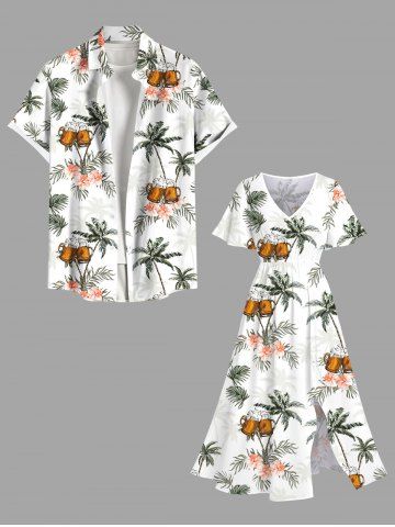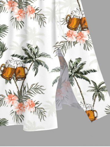 Robe Hawaïen Mi-Longue Fendue Fleur Tropicale et Arbre de Noix de Coco Imprimés de Grande Taille - Blanc - Blanc