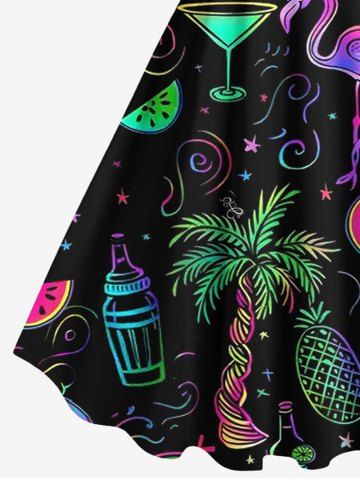 Robe Hawaïen Pastèque Ananas Noix de Coco et Ananas Imprimés de Grande Taille - Noir - Noir