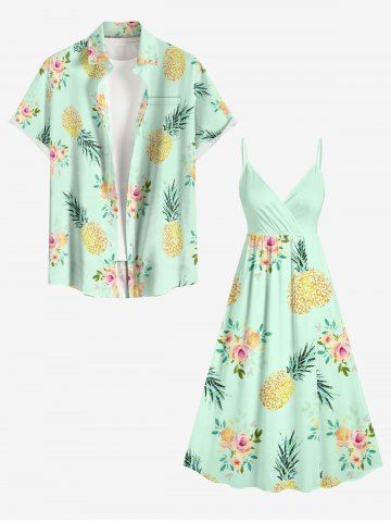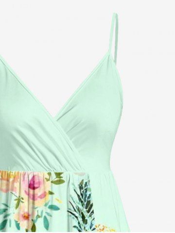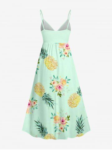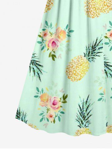 Robe hawaïenne à bretelles croisées, imprimé roses et ananas, grande taille - Vert Clair - Vert Clair