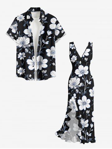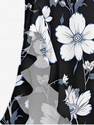 Robe hawaïenne à imprimé floral et feuilles, à volants et fente cache-cœur - Noir - Noir