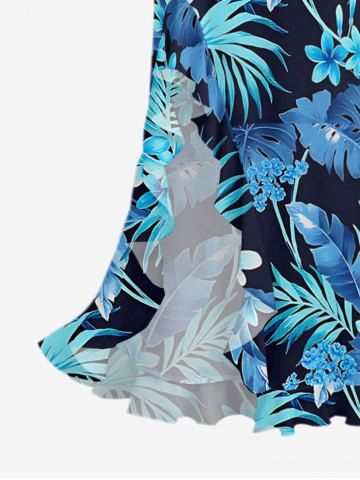 Robe hawaïenne à imprimé floral tropical et volants fendue - Bleu Profond - Xl