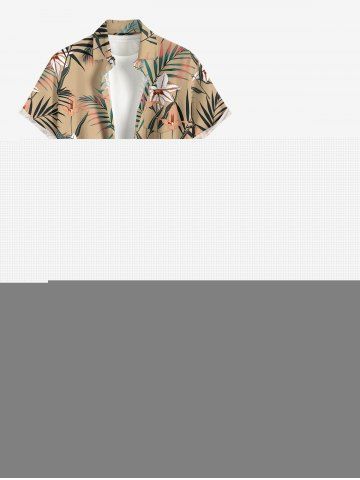Robe hawaïenne à imprimé tropical fleurs et feuilles, volants et fente cache-cœur - Bronze - M