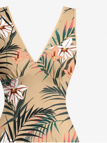 Robe hawaïenne à imprimé tropical fleurs et feuilles, volants et fente cache-cœur - Bronze - Xxxl