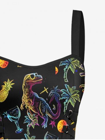 Robe hawaïenne à lacets, imprimé dinosaure, cocotier et jus d'ananas - Noir - Noir