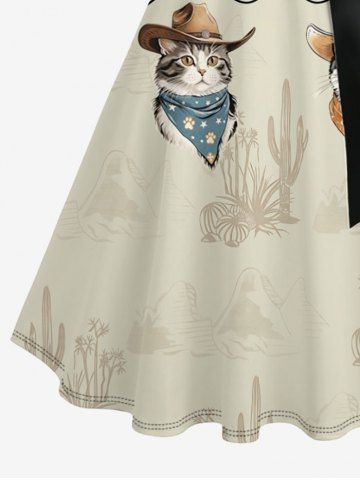 Robes Graphiques > Robe hawaïenne grande taille à imprimé chats, fleurs et cactus, boutons, col rabattu et ceinture