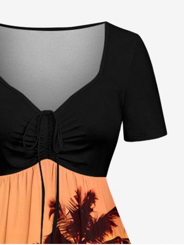 Robe hawaïenne grande taille à imprimé cocotier et soleil, cintrée - Orange Foncé - 3x