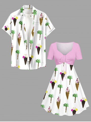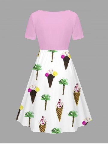 Robes Graphiques > Robe hawaïenne grande taille à imprimé crème glacée et noix de coco, cintrée