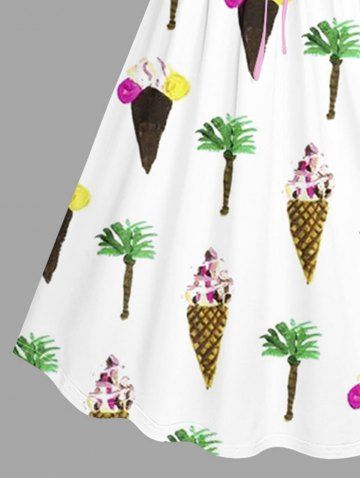 Robe hawaïenne grande taille à imprimé crème glacée et noix de coco, cintrée - Blanc - Blanc