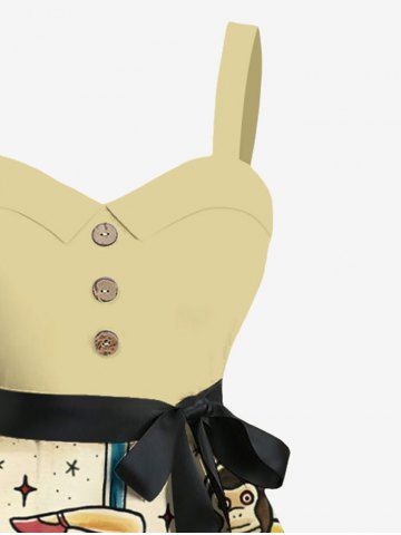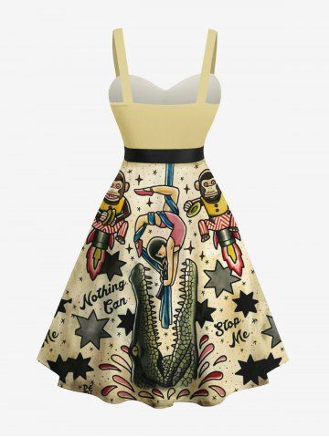 Robe hawaïenne grande taille à imprimé crocodile et étoiles, col rabattu et ceinture - Jaune - Jaune