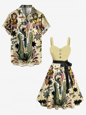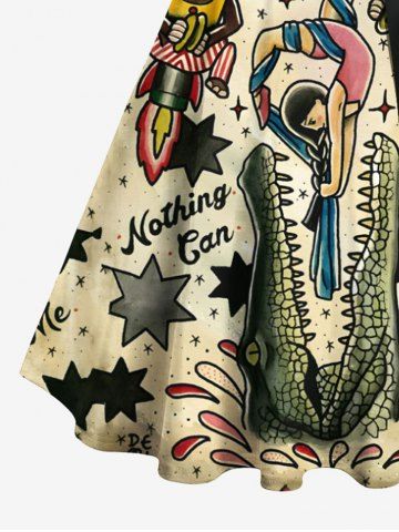 Robes Graphiques > Robe hawaïenne grande taille à imprimé crocodile et étoiles, col rabattu et ceinture