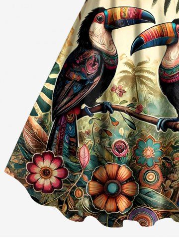 Robes Graphiques > Robe hawaïenne grande taille à imprimé ethnique floral et perroquet