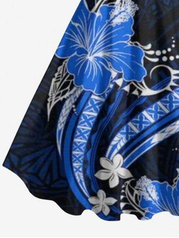 Robe hawaïenne grande taille à imprimé ethnique floral hibiscus et courbes. - Bleu Profond - 2x