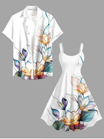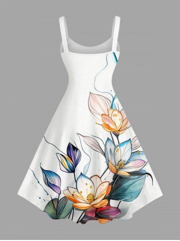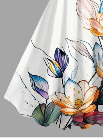 Robe hawaïenne grande taille à imprimé fleurs de lotus et feuilles - Blanc - Blanc