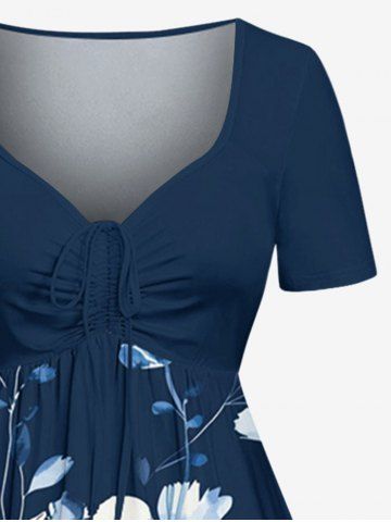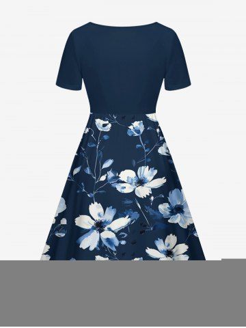 Robe hawaïenne grande taille à imprimé fleurs et feuilles, cintrée - Cadetblue - S