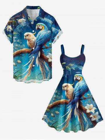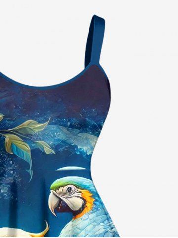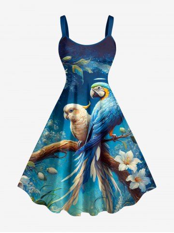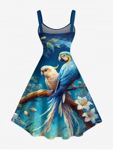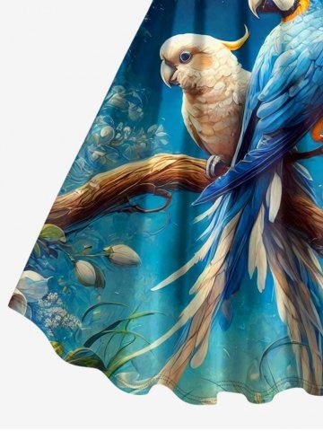 Robes Graphiques > Robe hawaïenne grande taille à imprimé fleurs, perroquets et branches d'arbres