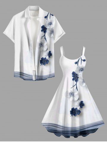 Robe hawaïenne grande taille à imprimé floral et branches - Blanc - Blanc