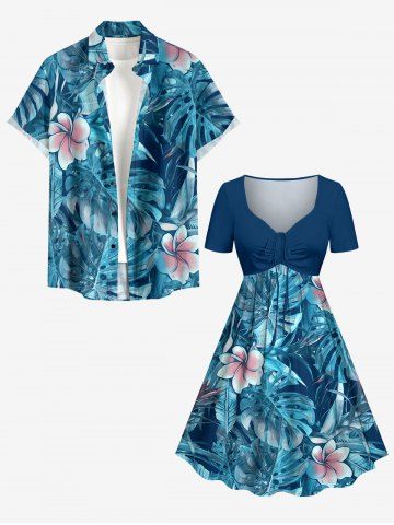 Robes Graphiques > Robe hawaïenne grande taille à imprimé floral tropical et feuilles, cintrée