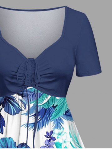 Robe hawaïenne grande taille à imprimé hibiscus et cocotiers, cintrée - Cadetblue - M
