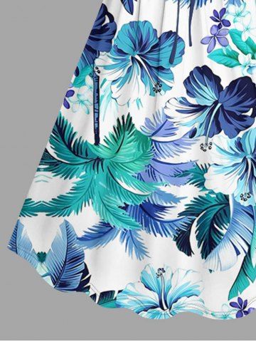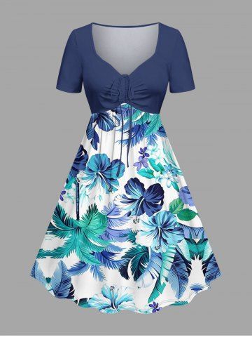 Robes Graphiques > Robe hawaïenne grande taille à imprimé hibiscus et cocotiers, cintrée