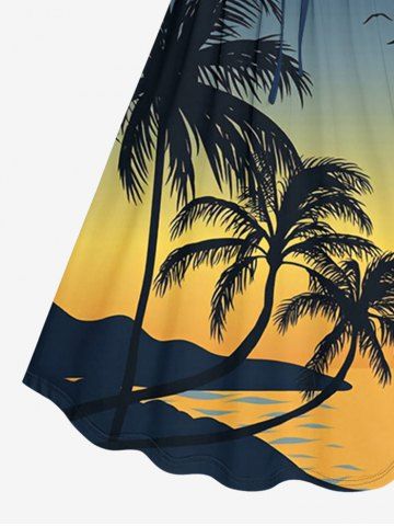 Robes Graphiques > Robe hawaïenne grande taille à imprimé ombré cocotier et oiseaux, cintrée