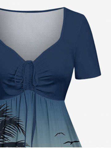 Robe hawaïenne grande taille à imprimé ombré cocotier et oiseaux, cintrée - Bleu Profond - L