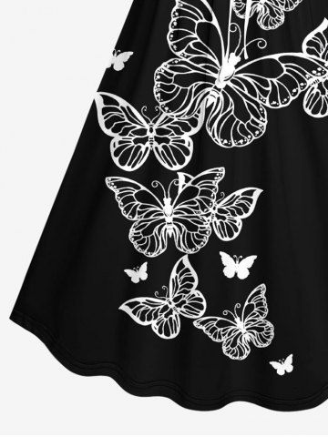 Robe hawaïenne grande taille à imprimé papillon et ceinture - Noir - Noir