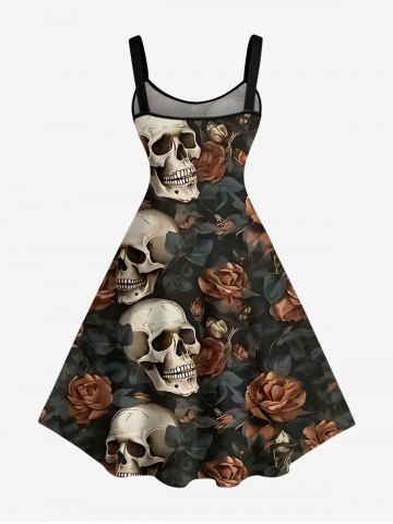 Robes Graphiques > Robe hawaïenne grande taille à imprimé tête de mort, fleurs et feuilles
