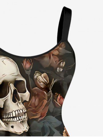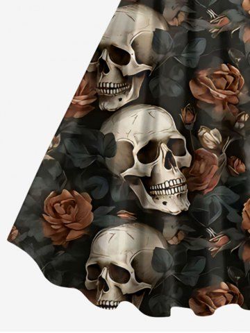 Robe hawaïenne grande taille à imprimé tête de mort, fleurs et feuilles - Noir - Noir