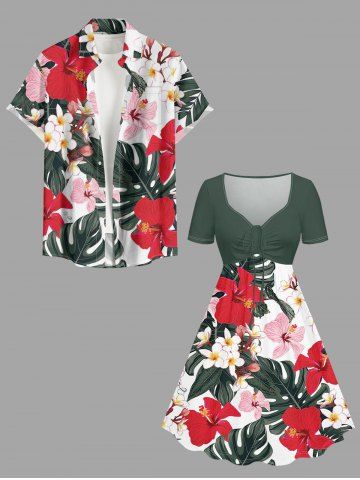 Robe hawaïenne grande taille à imprimé tropical et fleurs d'hibiscus, cintrée - Vert Profond - L