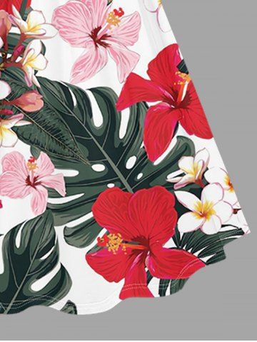 Robes Graphiques > Robe hawaïenne grande taille à imprimé tropical et fleurs d'hibiscus, cintrée