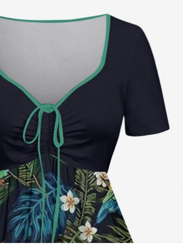 Robe hawaïenne grande taille à imprimé tropical et fleurs perroquets, cintrée - Noir - Noir