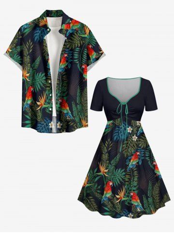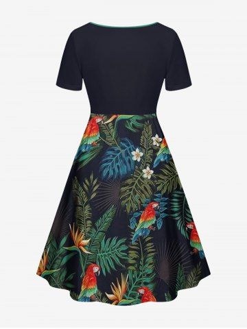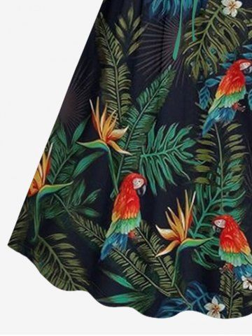 Robes Graphiques > Robe hawaïenne grande taille à imprimé tropical et fleurs perroquets, cintrée