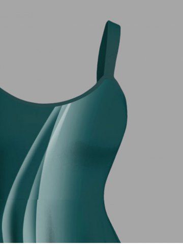 Robe hawaïenne grande taille imprimée cocotiers, soleil et mer, coupe trapèze - Émeraude - 1x
