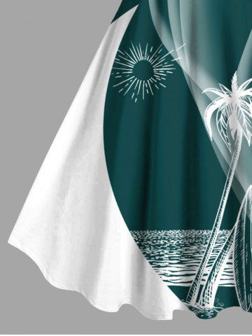 Robe hawaïenne grande taille imprimée cocotiers, soleil et mer, coupe trapèze - Émeraude - 4x