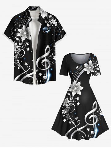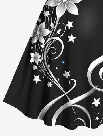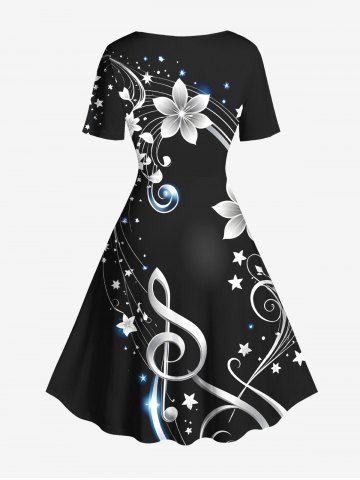 Robe hawaïenne grande taille imprimée fleurs, étoiles et symboles musicaux - Noir - Noir