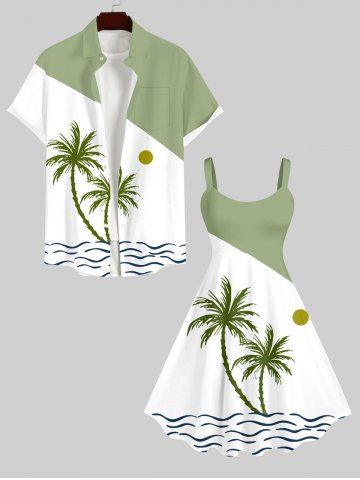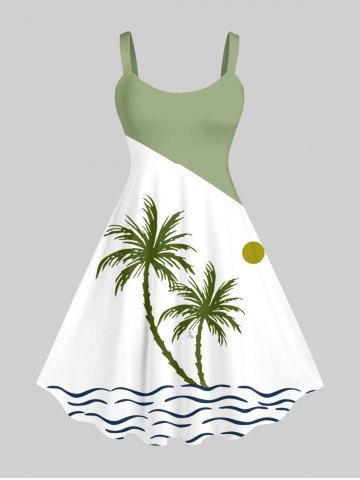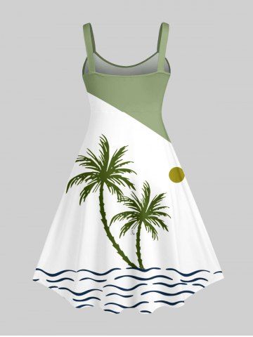 Robes Graphiques > Robe Hawaii Arbre Noix de Coco Océan Imprimé en Blocs de Couleurs de Grande Taille