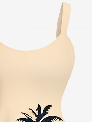 Robe Hawaii Arbre Noix de Coco Océan Imprimé en Blocs de Couleurs de Grande Taille - Café Lumière - 5x