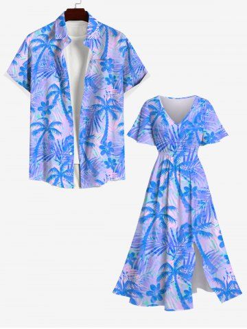Coconut Tree Flowers Print Plus Size Matching Hawaii Beach Outfit For Couples