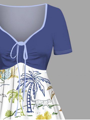 Robes Graphiques > Robe Hawaii Ligne A Arbre Noix de Coco et Océan Imprimés de Grande Taille
