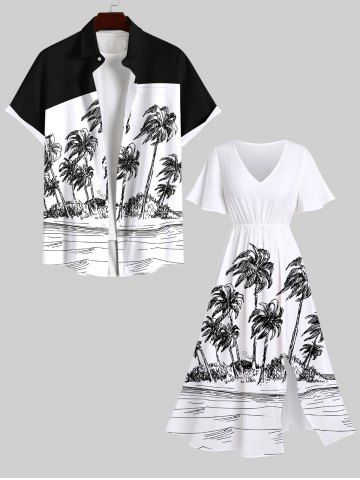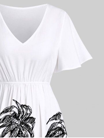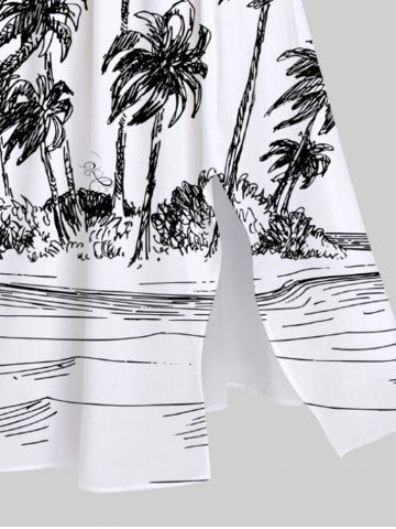 Robe Hawaii Mi-Longue Fendue Cocotier et Océan Imprimés de Grande Taille - Blanc - Blanc