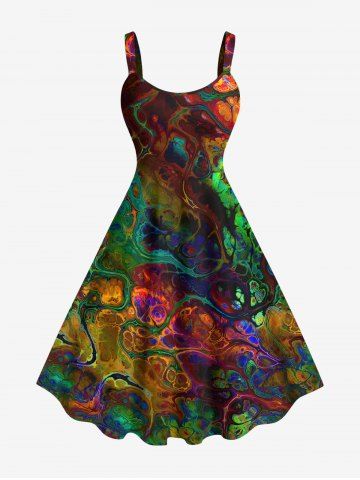 Robes Graphiques > Robe Hawaiien Grande Taille Imprimé Lettres et Pompon Coloré