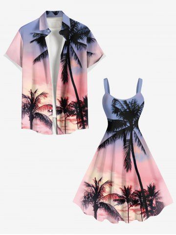 Robe Hawaiienne Imprimée Cocotier Colorée Grande Taille - Rose Clair - Rose Léger