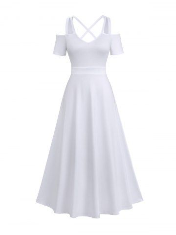 Robe Ligne A à Bretelle Croisée à Epaule Dénudée en Couleur Unie de Grande Taille - Blanc - Blanc