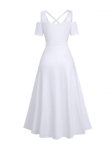 Robe Ligne A à Bretelle Croisée à Epaule Dénudée en Couleur Unie de Grande Taille - Blanc - Blanc