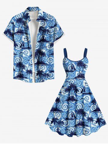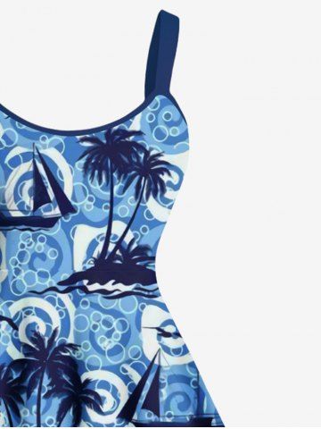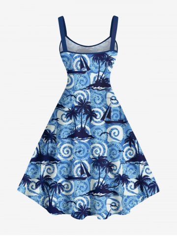 Robe Ligne A à Bretelle Nouée Arbre Noix de Coco Imprimé de Grande Taille - Bleu - Bleu
